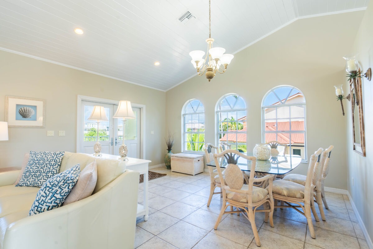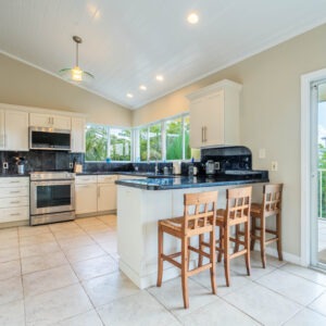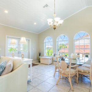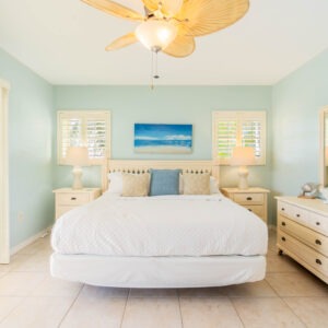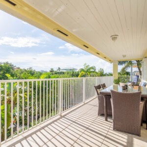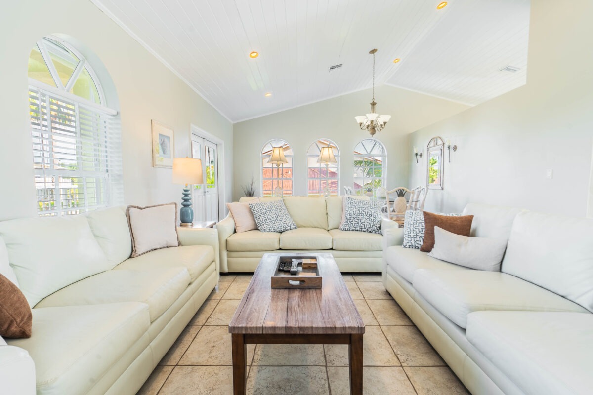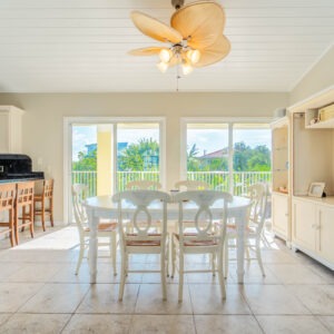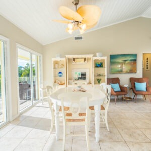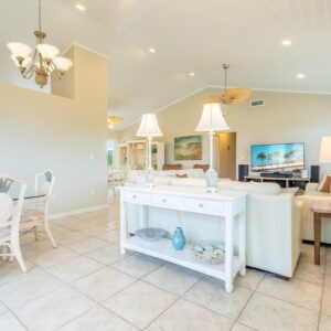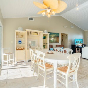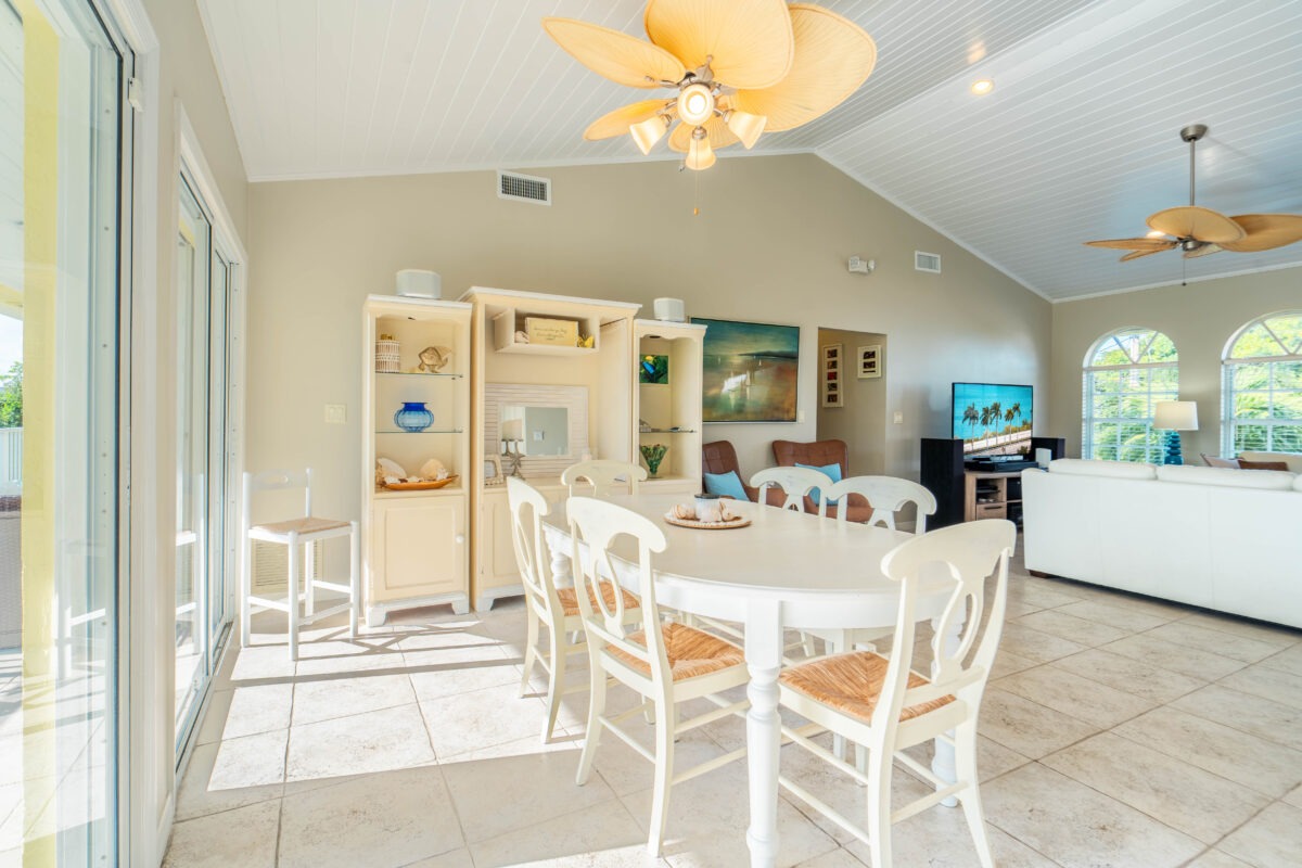 There are two full dining tables, perfect for family dinners or casual breakfasts before a day of adventure. The bedrooms offer cozy comfort, each designed with island-inspired touches and access to outdoor spaces.