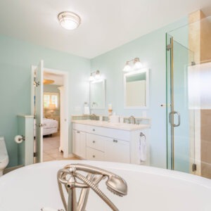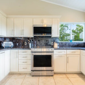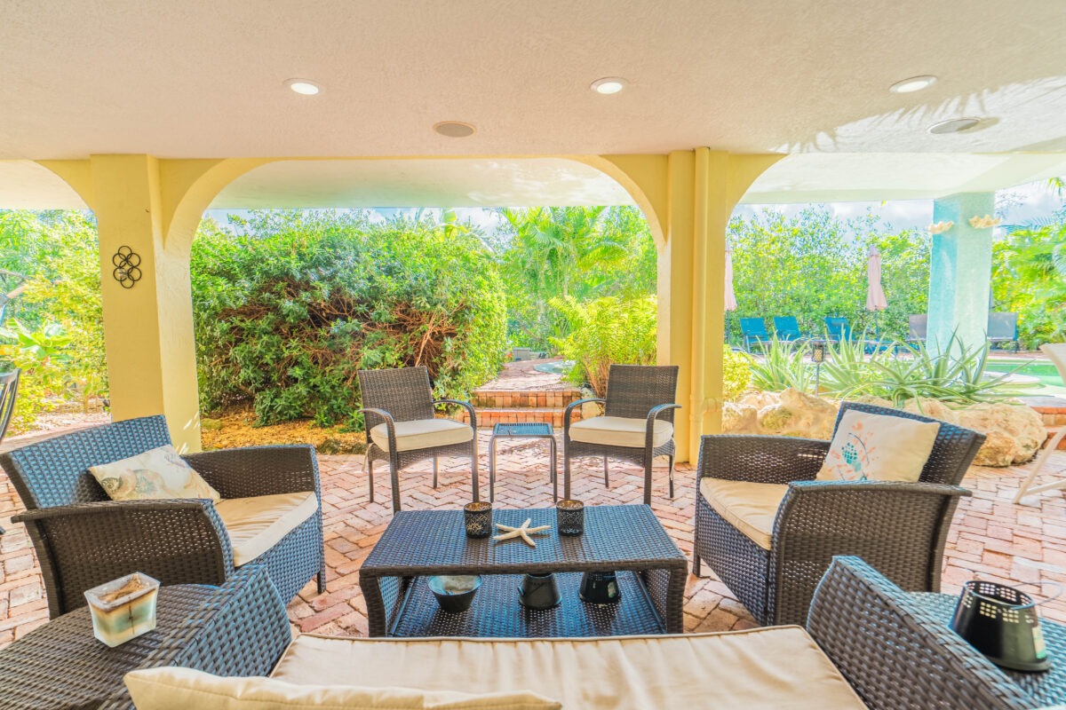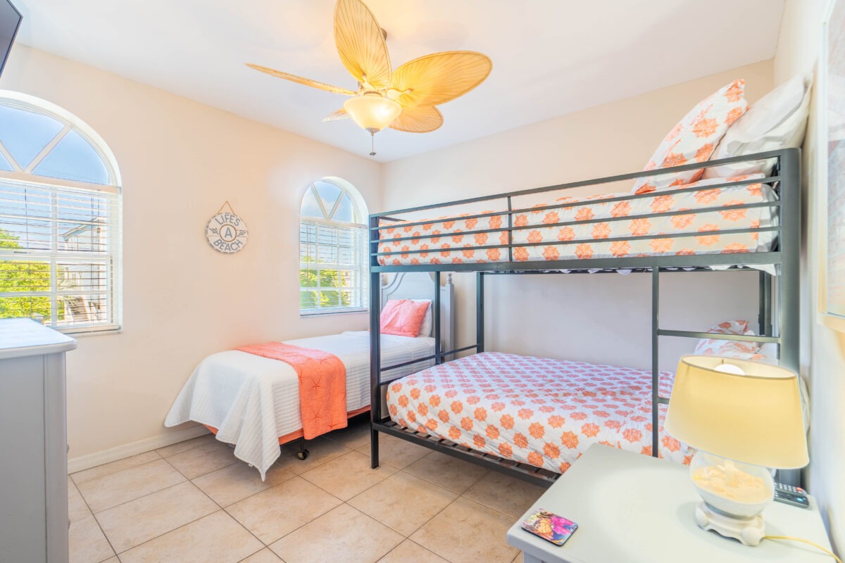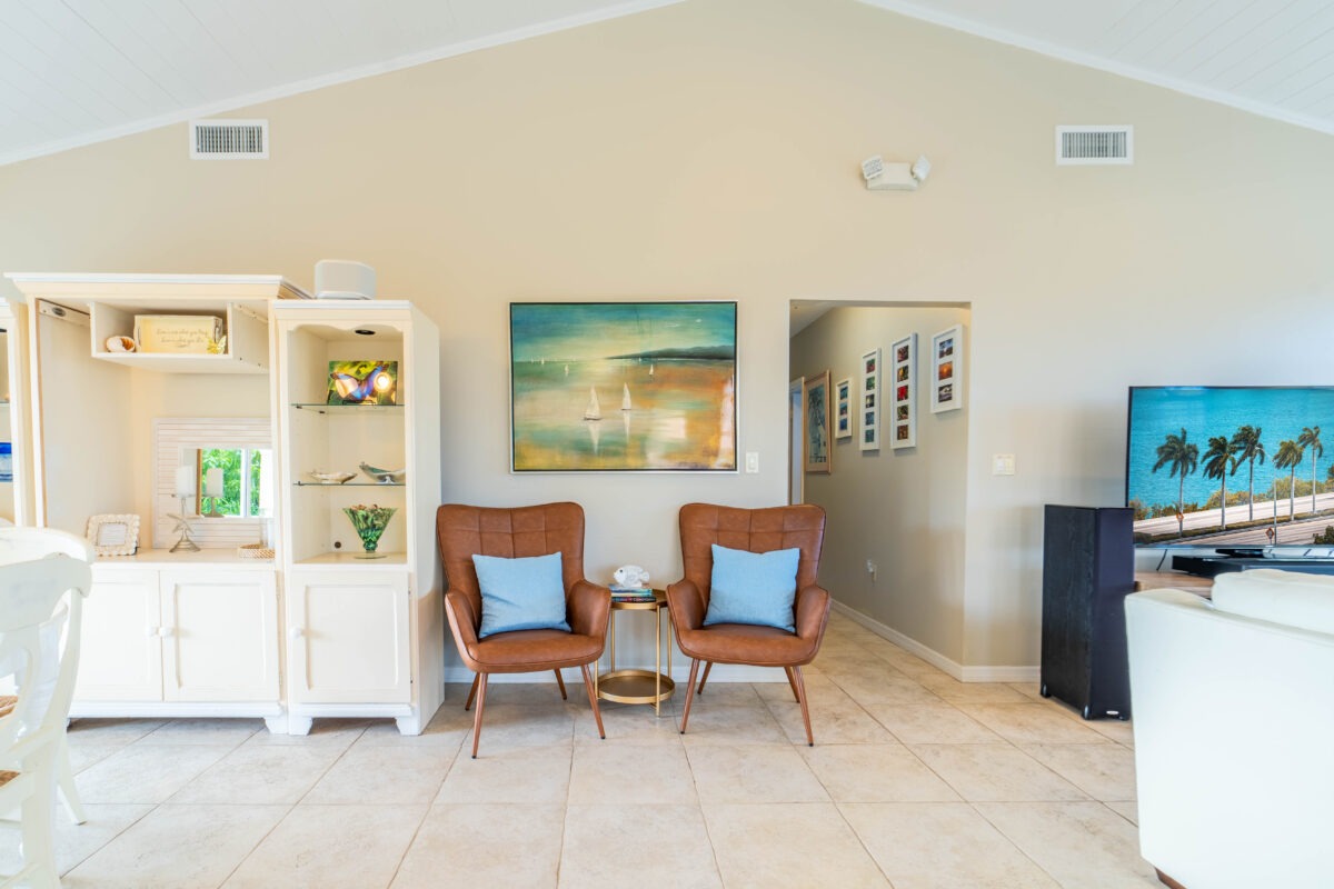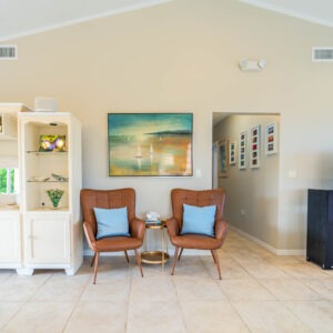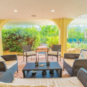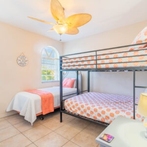 There are two full dining tables, perfect for family dinners or casual breakfasts before a day of adventure. The bedrooms offer cozy comfort, each designed with island-inspired touches and access to outdoor spaces.